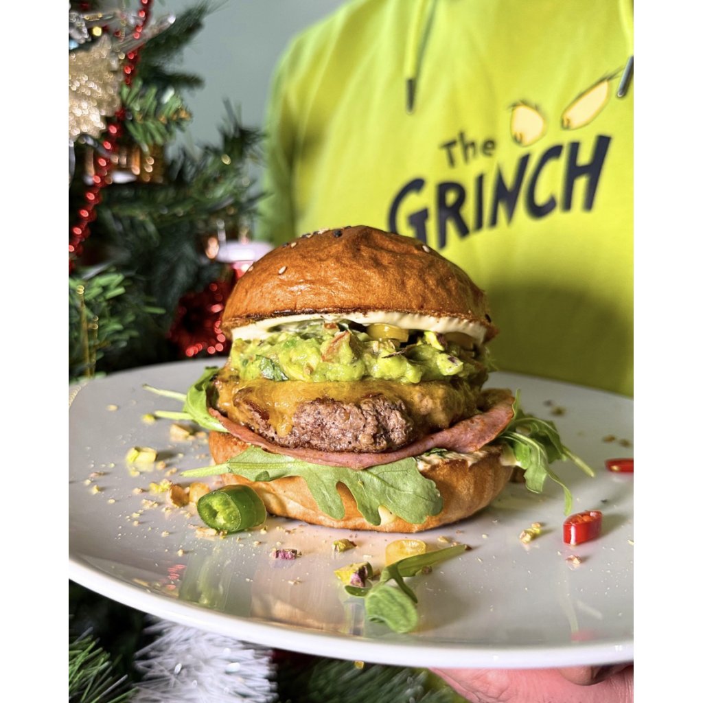 Pistáciová mayo, rukola, opečená mortadella, 100% hovězí masíčko s čedarem, guacamole a chilli s pistáciemi:))